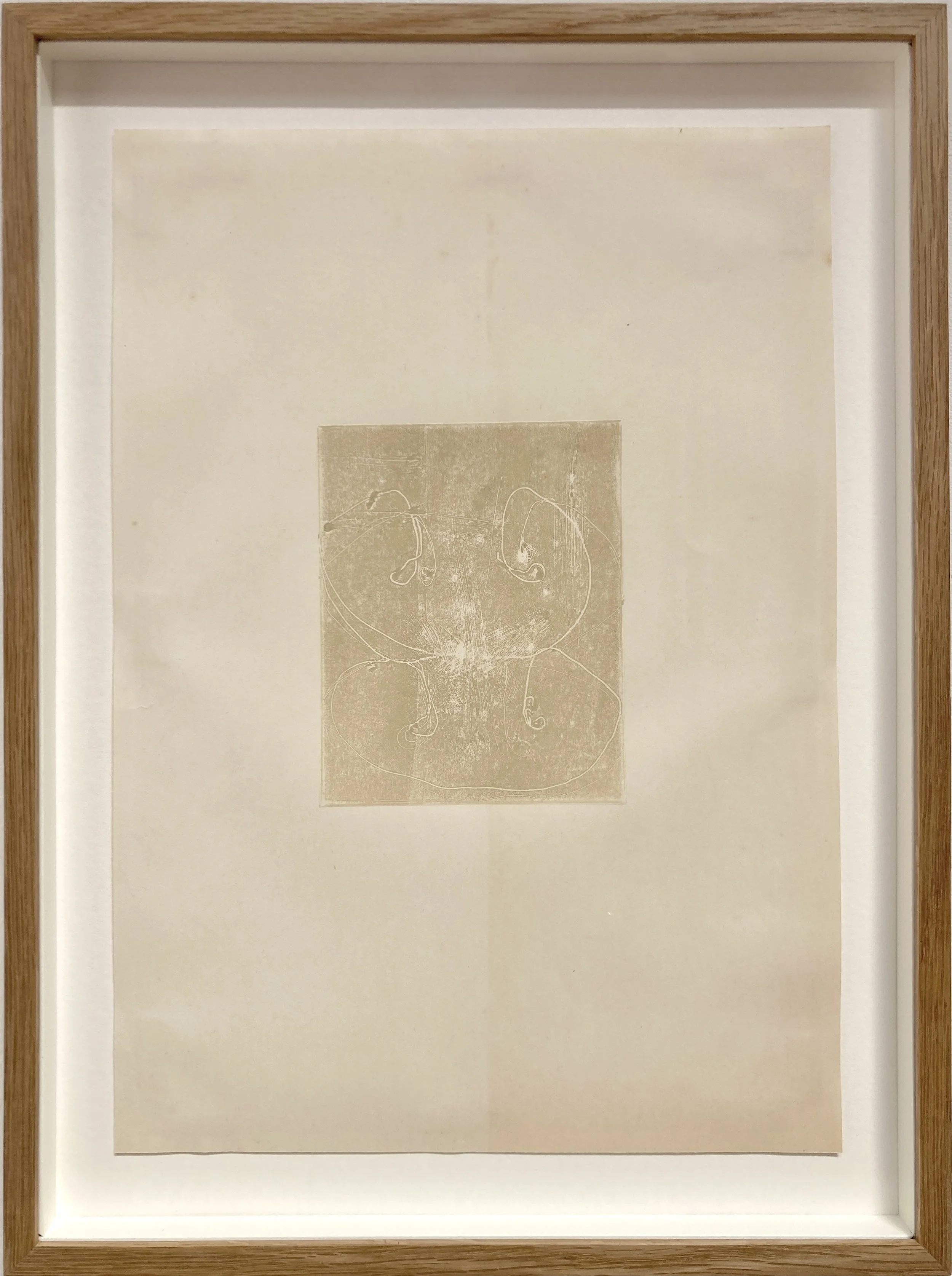 Solace, 2023, monotype: water based ink on vintage paper Float mounted in natural oak 0.9cm wide frame Anti-reflective, UV-resistant glass Unframed 33.5x23.5cm / framed 39.8x29.5cm