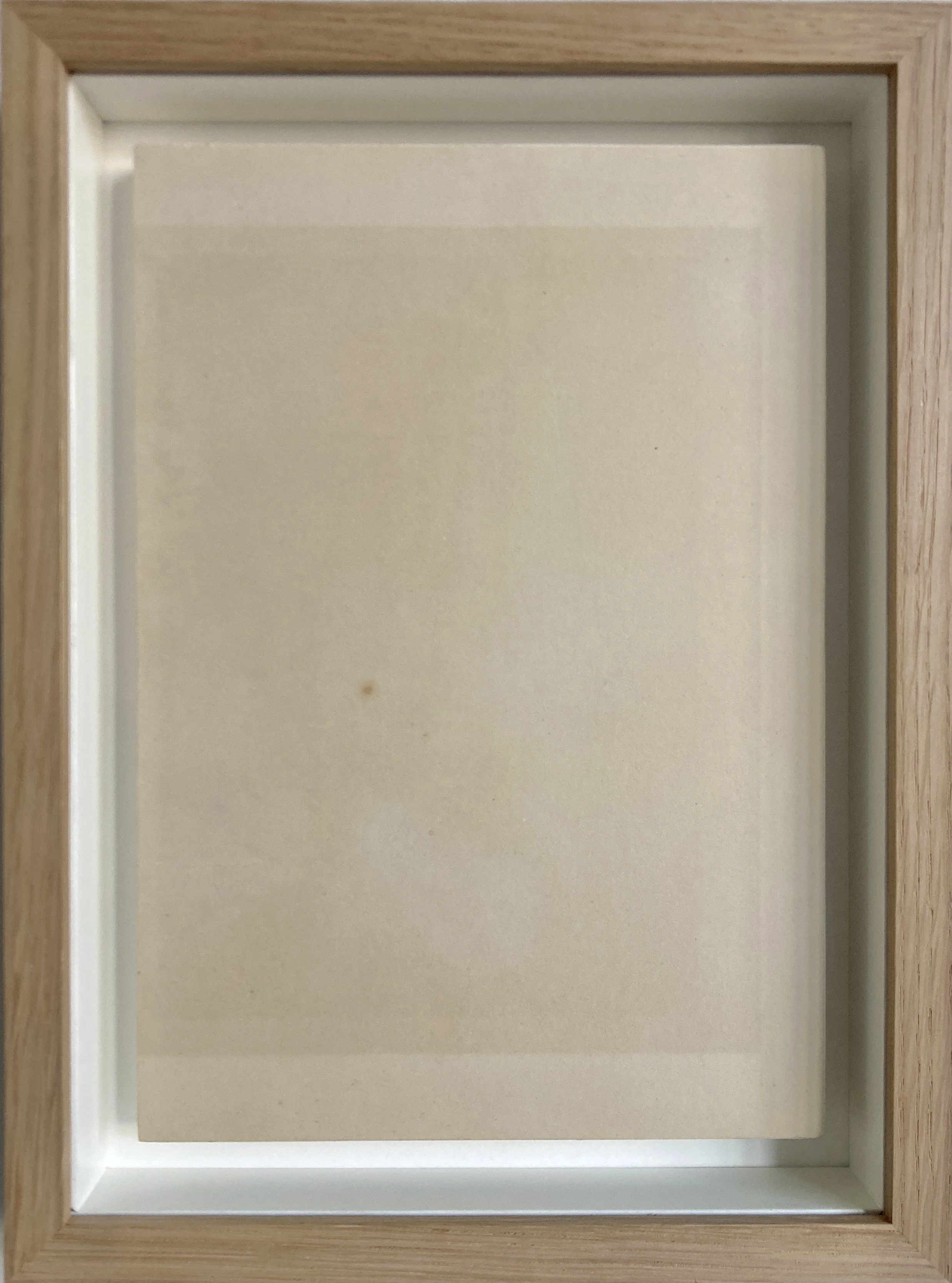 Taciturn, 2021, vintage paper on gesso panel Float mounted in natural oak box frame Anti-reflective, UV resistant glass Unframed 23.3x16cm / framed 28.2 x 21cm