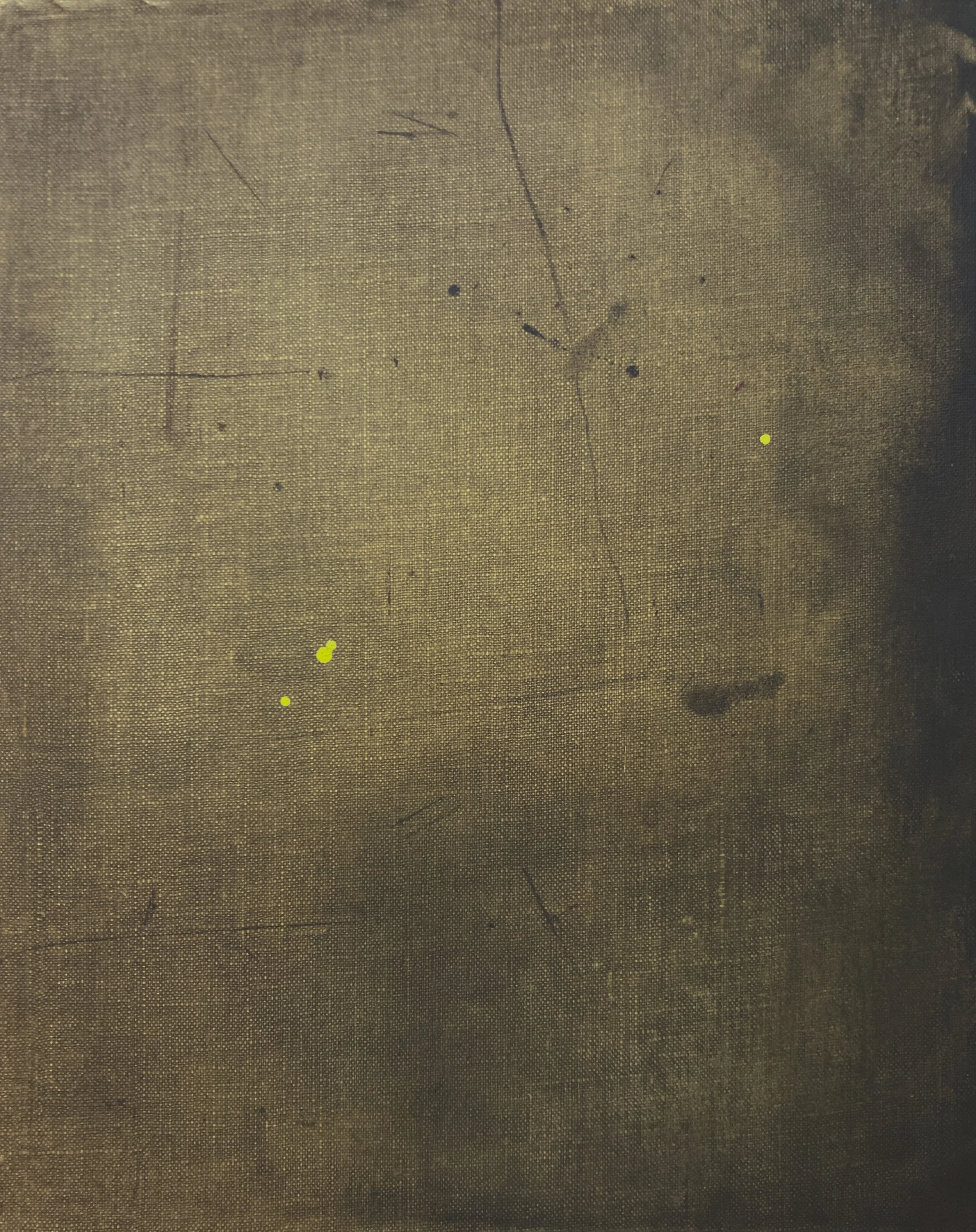 We think of grief as being grey, but maybe it is yellow, 2023 Oil on vintage book cover, 20 x 16 cm